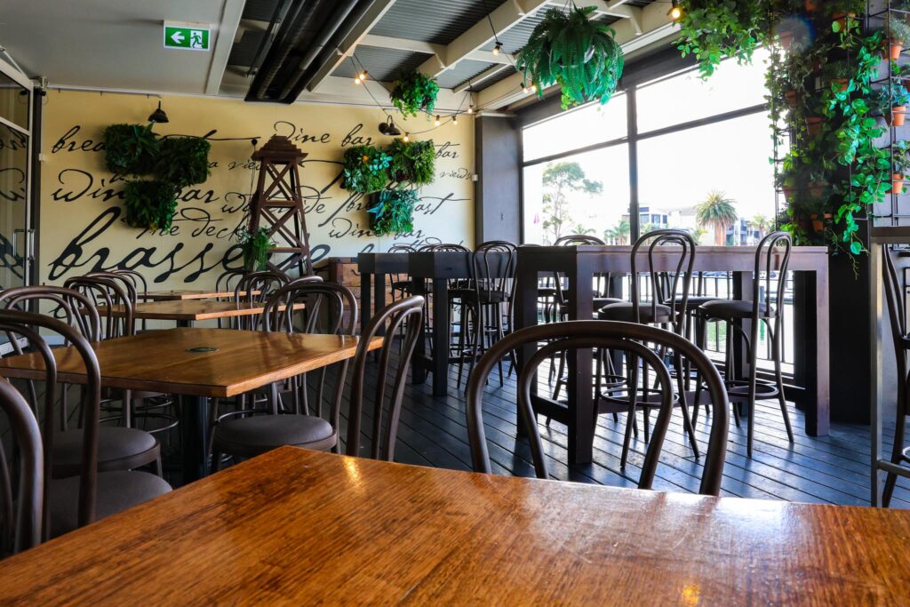 Host your next cocktail function in style at The Wine Room a dark, moody and intimate space tucked inside The Cove Hotel. Surrounded by wine displays, timber finishes, and soft lighting, this semi-private section of the restaurant offers the perfect blend of atmosphere and marina side charm.